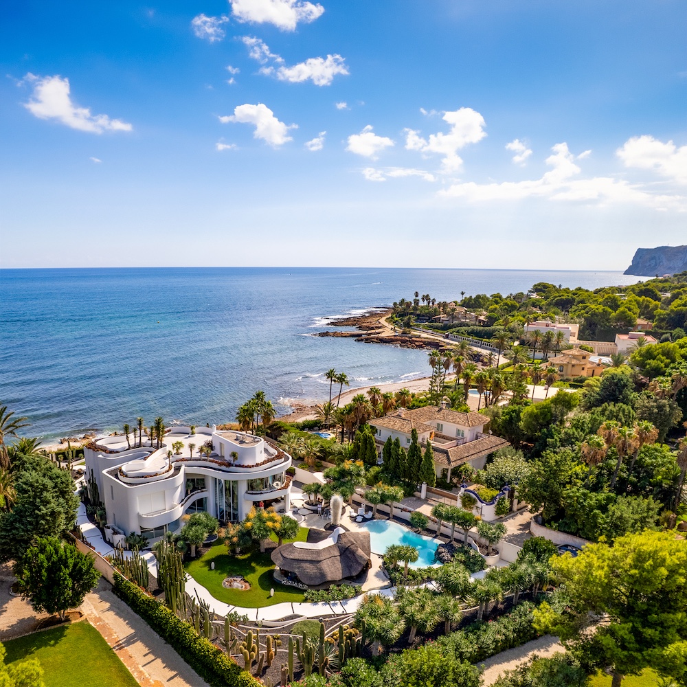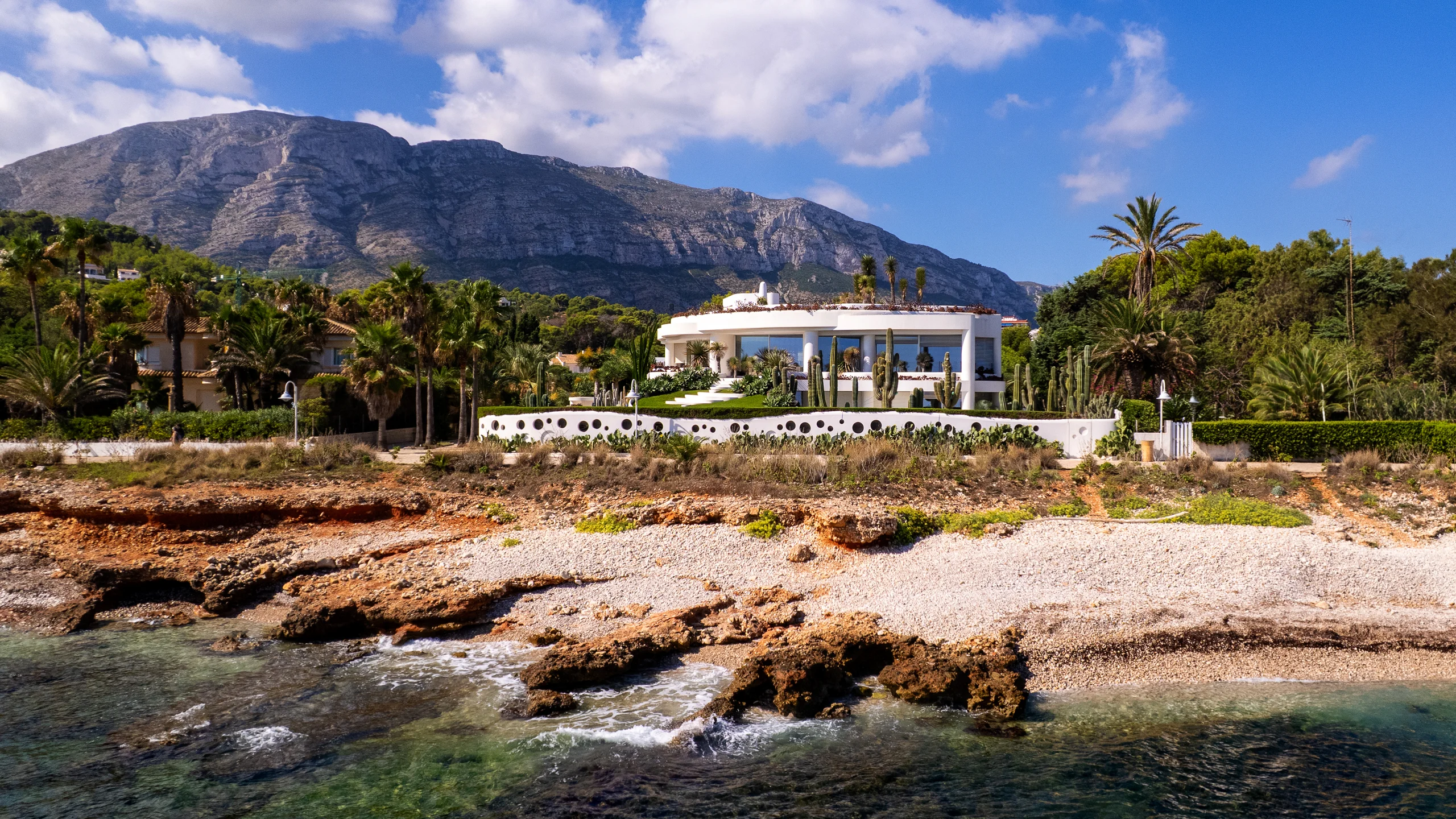 Situada sobre una extraordinaria parcela en primera línea junto a Punta Negra, esta residencia reúne arquitectura mediterránea escultórica, acceso privado directo al mar y un nivel de privacidad excepcional en uno de los enclaves costeros más singulares de Dénia.
