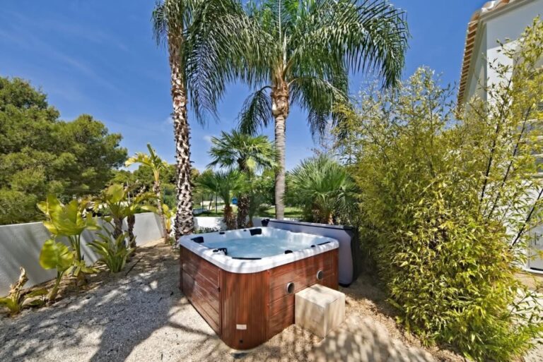 Der Außenbereich ist der Bereich, in dem diese Immobilie wirklich glänzt. Ein privater Swimmingpool, der durch einen Whirlpool ergänzt wird, ist der natürliche Treffpunkt für lange Sonnentage und entspannte Abende. Für Kinder gibt es einen eigenen Spielbereich, während die Erwachsenen auf der Terrasse den herrlichen Meerblick und die ruhige mediterrane Atmosphäre genießen können. Ein voll ausgestatteter Grillplatz bietet die Bühne für unvergessliche Mittag- und Abendessen unter freiem Himmel und bildet den perfekten Rahmen für Unterhaltung und Feste.