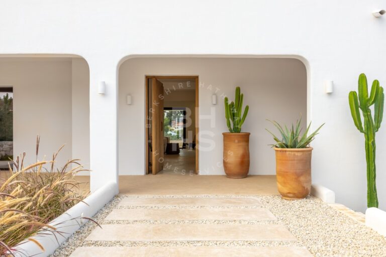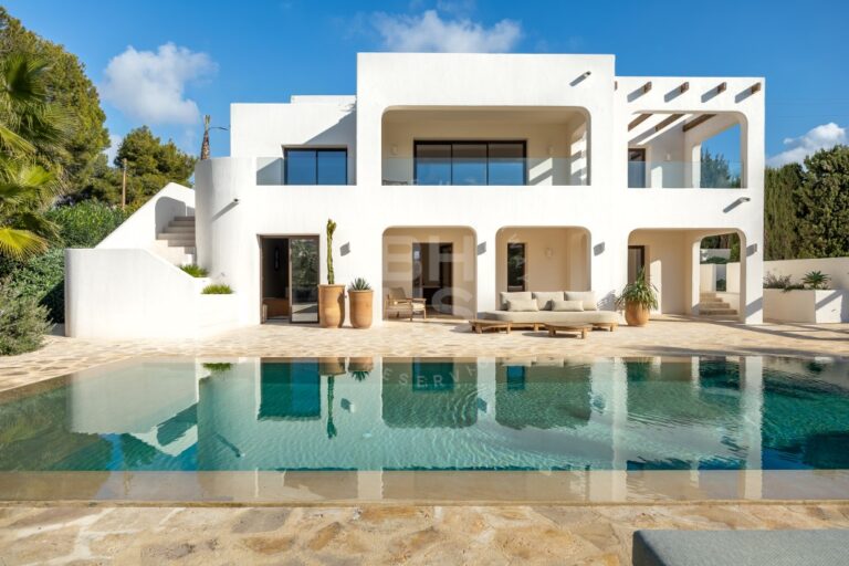 Im Inneren strahlt das Haus Authentizität aus, mit hochwertigen Oberflächen, erdigen Tönen und natürlichen Materialien, inspiriert von Wabi-Sabi-Prinzipien. Die Fußbodenheizung und die integrierte Klimaanlage sorgen das ganze Jahr über für ein angenehmes Raumklima, während die großzügigen Fenster den Innenraum nahtlos mit der mediterranen Landschaft verbinden. Jeder Raum bietet ein Gefühl von Weite und Ruhe und macht die Villa nicht nur zu einem Wohnsitz, sondern zu einem Zufluchtsort.