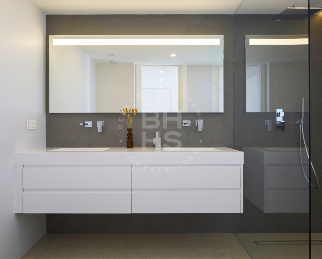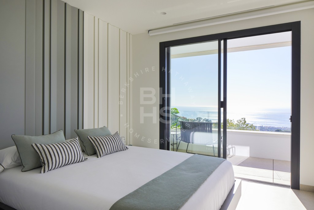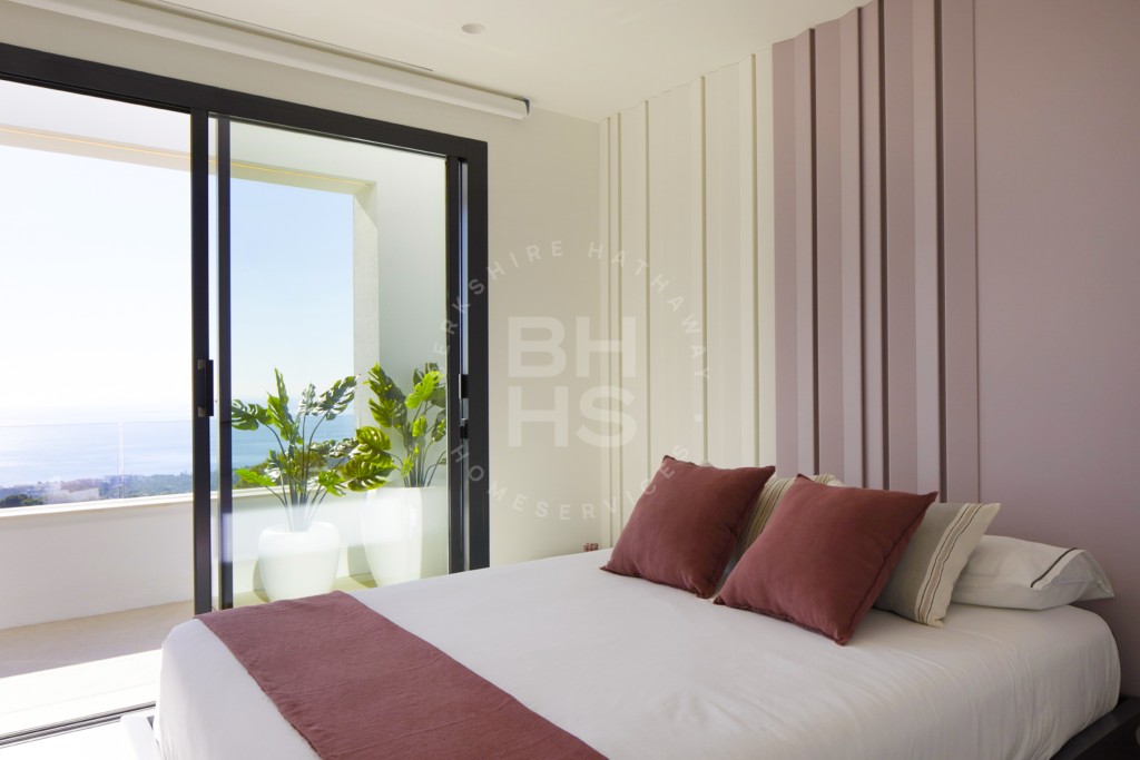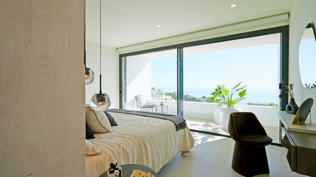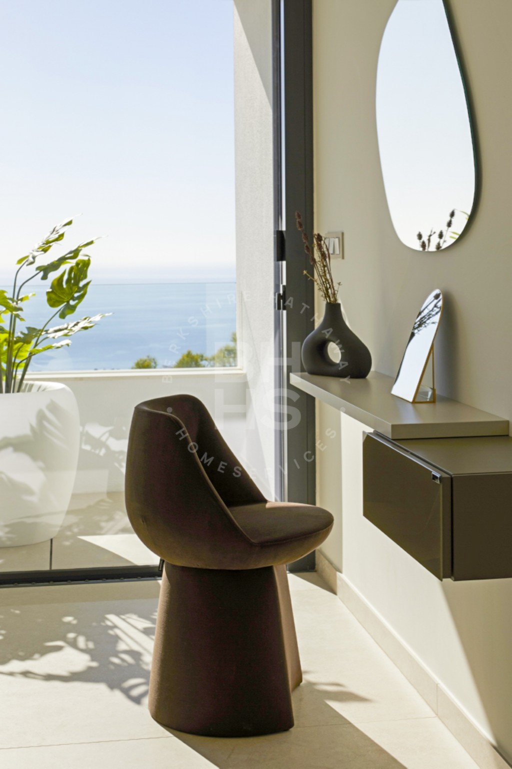 Auf der mittleren Etage befinden sich drei der vier Schlafzimmer der Villa. Zwei Hauptschlafzimmer und zwei weitere Schlafzimmer sind so angeordnet, dass sie Privatsphäre und Luxus bieten. Das Hauptschlafzimmer auf dieser Etage verfügt über ein Bett, das so ausgerichtet ist, dass es den atemberaubenden Meerblick einfängt, Zugang zu einer privaten Terrasse, ein eigenes Bad und einen begehbaren Kleiderschrank. Die beiden weiteren Schlafzimmer verfügen ebenfalls über ein eigenes Bad, viel Stauraum und einen gemeinsamen Zugang zu einer weiteren Terrasse, was eine ideale Lösung für Familienmitglieder oder Gäste darstellt. Zusätzliche Schränke im Flur bieten zusätzlichen Stauraum und sorgen für ein aufgeräumtes Leben.