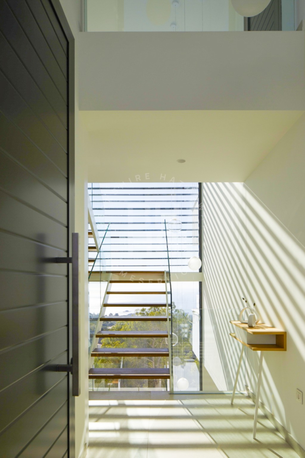 Die Villa erstreckt sich über drei Etagen, von denen jede sorgfältig entworfen wurde, um den Raum, das Licht und die Aussicht zu maximieren. Beim Betreten der obersten Etage werden Sie von einer geräumigen Garage für zwei Autos und einer eleganten Eingangshalle begrüßt, die sich nahtlos an den Rest des Hauses anschließt. Diese Ebene gibt den Ton für die moderne Ästhetik und das funktionale Design der Villa an.