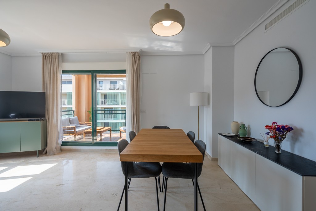 Diese schöne Wohnung im dritten Stock bietet 100 m² Wohnfläche, einschließlich einer 9 m² großen Südterrasse mit herrlichem Blick auf den Berg Montgó, die Schwimmbäder und die nahe gelegene Straße. Sie befindet sich in einer der begehrtesten Gegenden von Denia, nur einen kurzen Spaziergang vom Stadtzentrum entfernt und nur 200 Meter vom Strand, dem Yachthafen und dem Yachtclub. Annehmlichkeiten des täglichen Bedarfs wie Supermärkte und eine Apotheke sind nur fünf Minuten zu Fuß entfernt. Sowohl der Flughafen von Alicante als auch der von Valencia sind leicht zu erreichen, etwa 100 Kilometer von der Residenz entfernt.