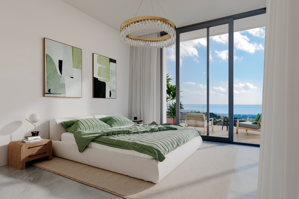 Die Schlafzimmer sind als Oasen der Ruhe konzipiert, mit warmen Eichenholzoberflächen, minimalistischen Linien und Zugang zu den Außenbereichen. Die Bäder sind mit hochwertigen Materialien von Roca The Gap und Grohe ausgestattet und verfügen über begehbare Duschen und rahmenlose Glaswände, die Luxus mit Alltagsfunktionalität verbinden.