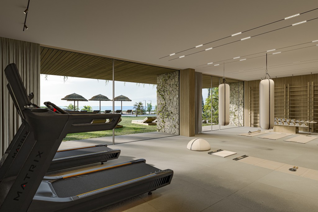 Vom zweiten Stock aus hat man einen weiten Blick über das Meer, die Gärten und den Himmel in einem Zug. Die Materialien sind taktil und zeitlos – Naturtöne, raffinierte Armaturen und sorgfältige Details, die die Architektur atmen lassen.