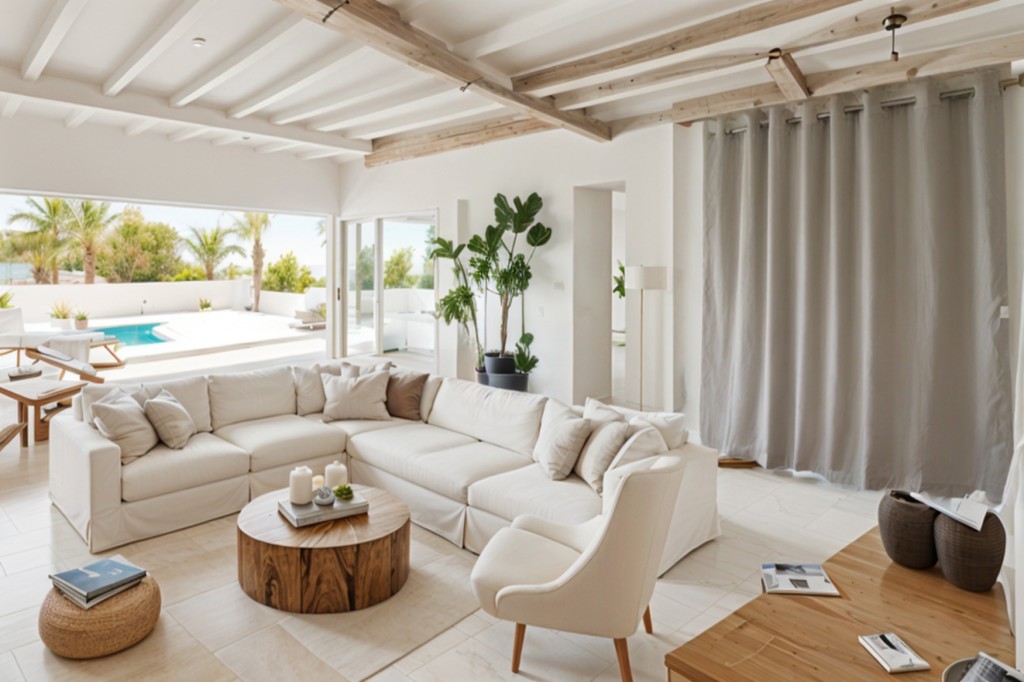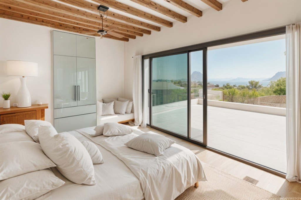 Die Villa erstreckt sich über drei Ebenen und wurde so konzipiert, dass sie ein Maximum an Komfort, natürlichem Licht und Flexibilität bietet. Der Hauptwohnbereich verfügt über ein geräumiges, offenes Wohn- und Esszimmer, das nahtlos mit der modernen Küche verbunden ist und so einen warmen und eleganten Raum schafft, in dem das tägliche Leben und gesellige Zusammenkünfte mühelos ablaufen. Große Fenster und ein direkter Zugang zu den Terrassen lassen den Blick nach draußen schweifen, so dass der Meerblick und das mediterrane Licht die Atmosphäre im ganzen Haus bestimmen.