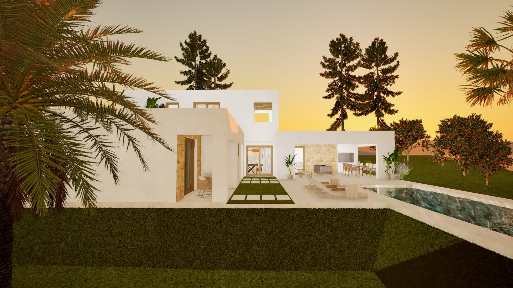 The exterior is equally enchanting. A refreshing pool area serves as the centerpiece for relaxation, surrounded by terraces where you can soak in the sunshine or unwind beneath the stars. The gardens are designed with low-water, Mediterranean-friendly plantings, blending beauty with ecological sensitivity. This outdoor oasis enhances the villa’s lifestyle appeal while reflecting respect for Javea’s natural environment.