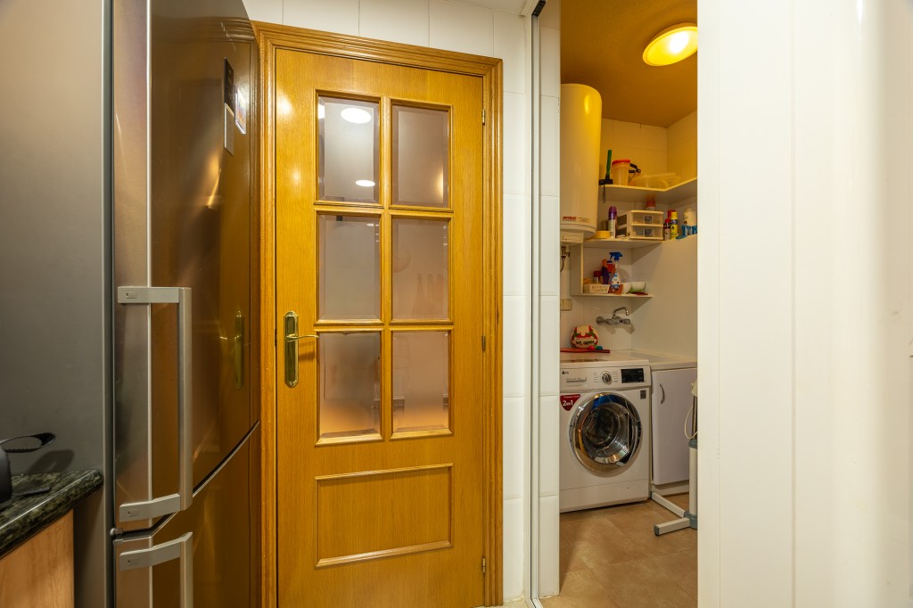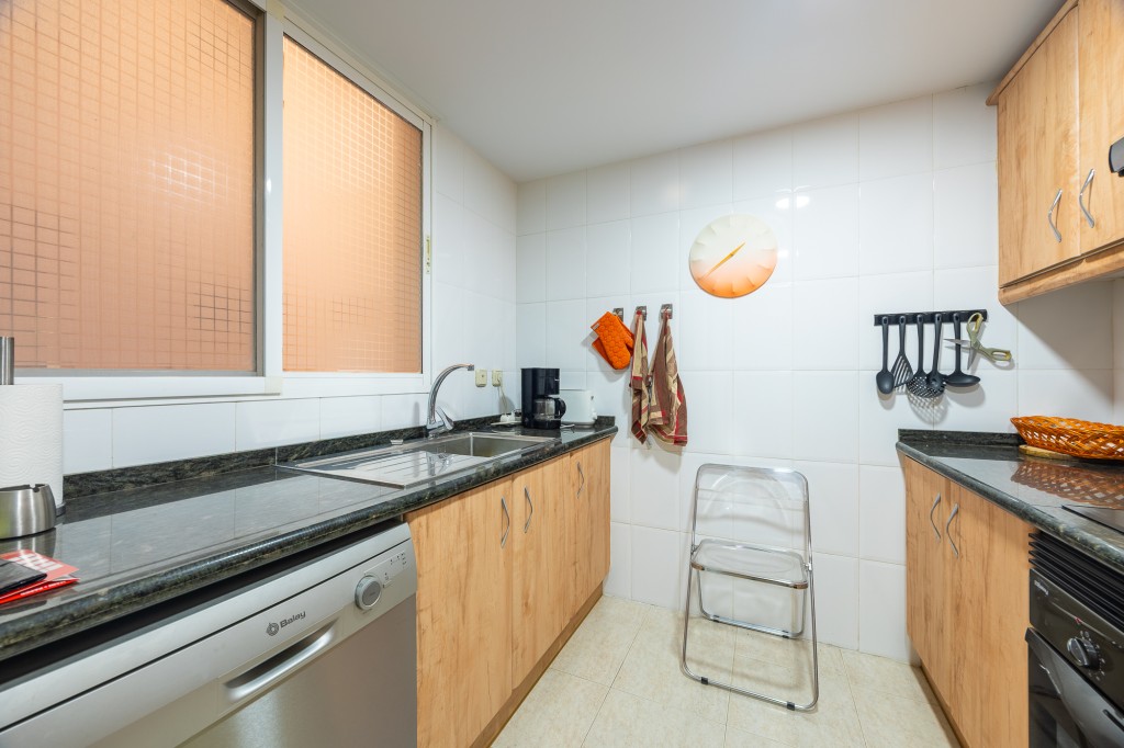 With a built area of 117 m², the apartment presents a practical and well-distributed layout. The independent kitchen is spacious and efficient, ideal for everyday use, and includes a separate laundry area for added convenience. The bright living-dining room opens onto both a covered and open terrace, creating a seamless connection between indoor and outdoor living while offering open views and the refreshing sea breeze.