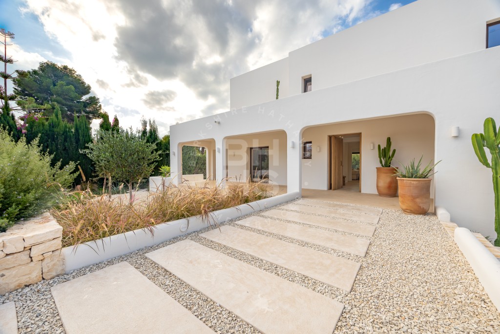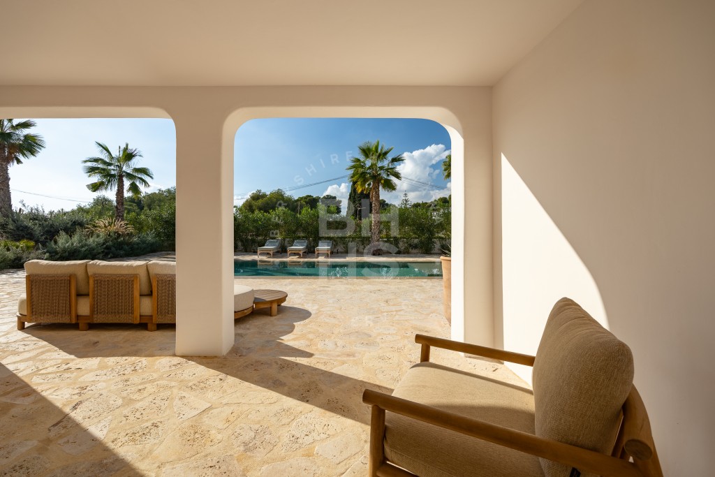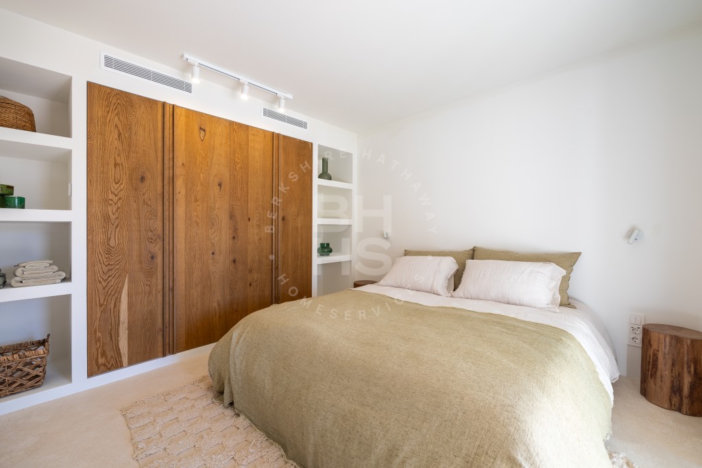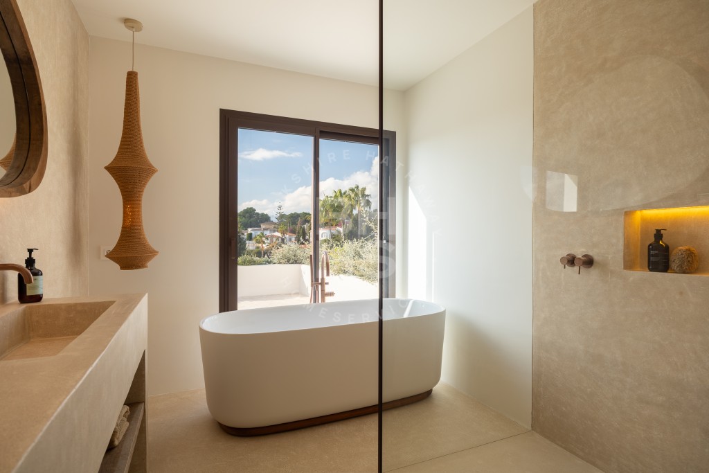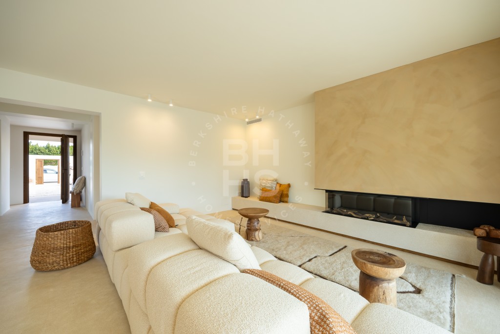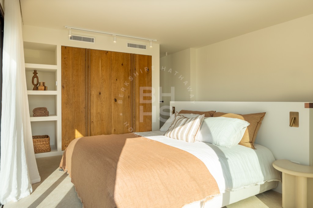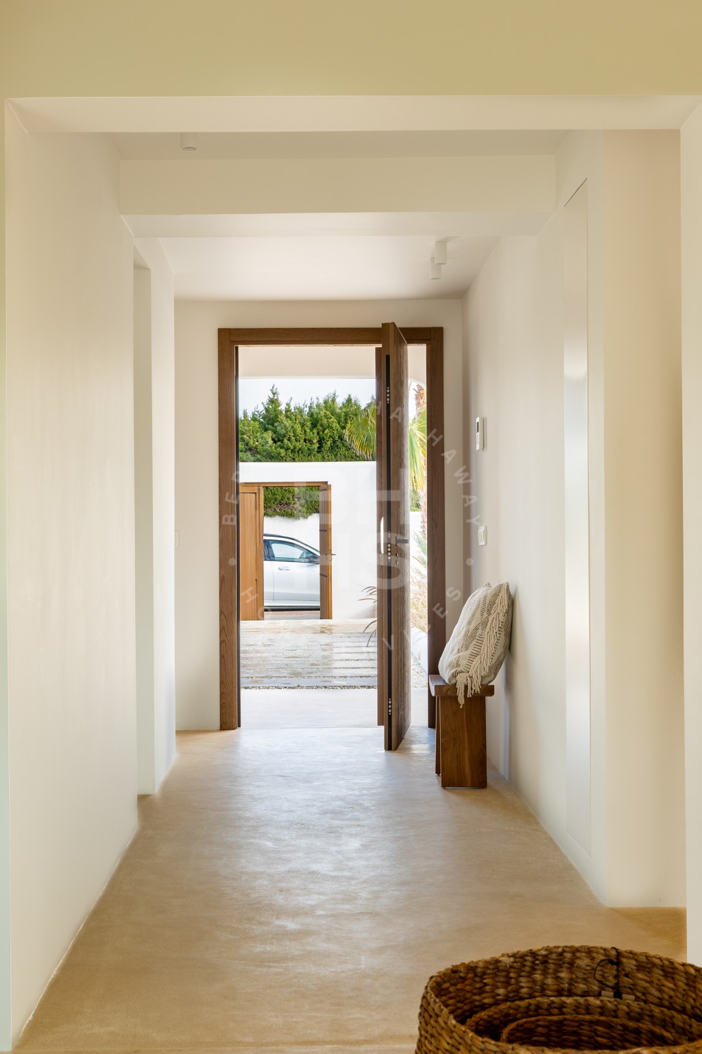 Inside, the home radiates authenticity with high-quality finishes, earthy tones, and natural materials inspired by wabi-sabi principles. Underfloor heating and integrated air conditioning ensure a pleasant indoor climate throughout the year, while expansive windows seamlessly connect the interior with the Mediterranean landscape. Every room offers a sense of space and serenity, making the villa not only a residence but a sanctuary.