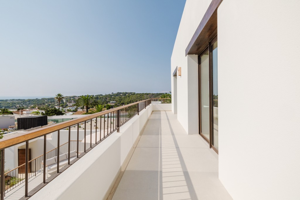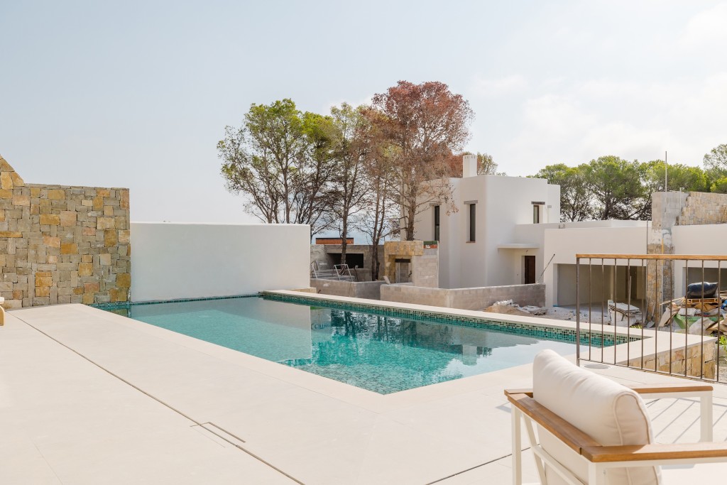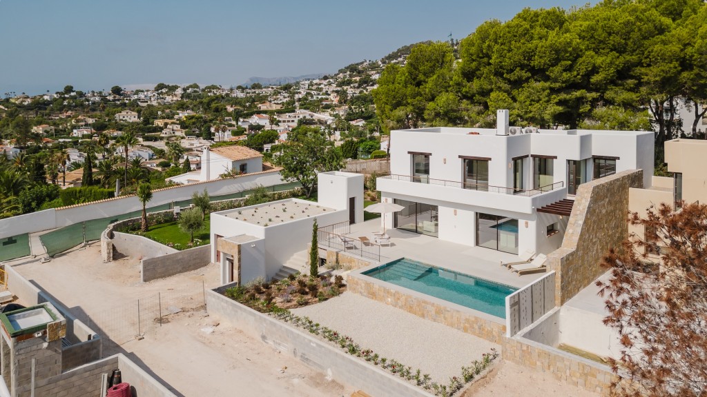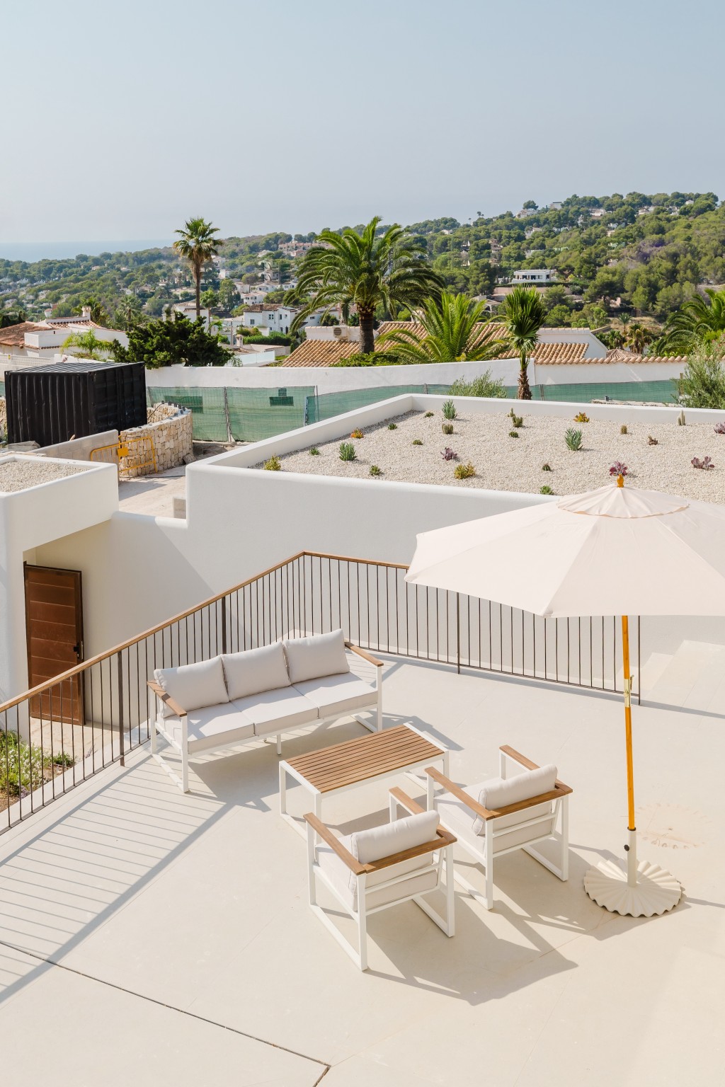 This elegant two-storey villa sits on a 900 m² plot within the exclusive Moraira Natura community. Designed to blend indoor comfort with outdoor beauty, the home combines refined architectural elements with panoramic views of the Mediterranean landscape