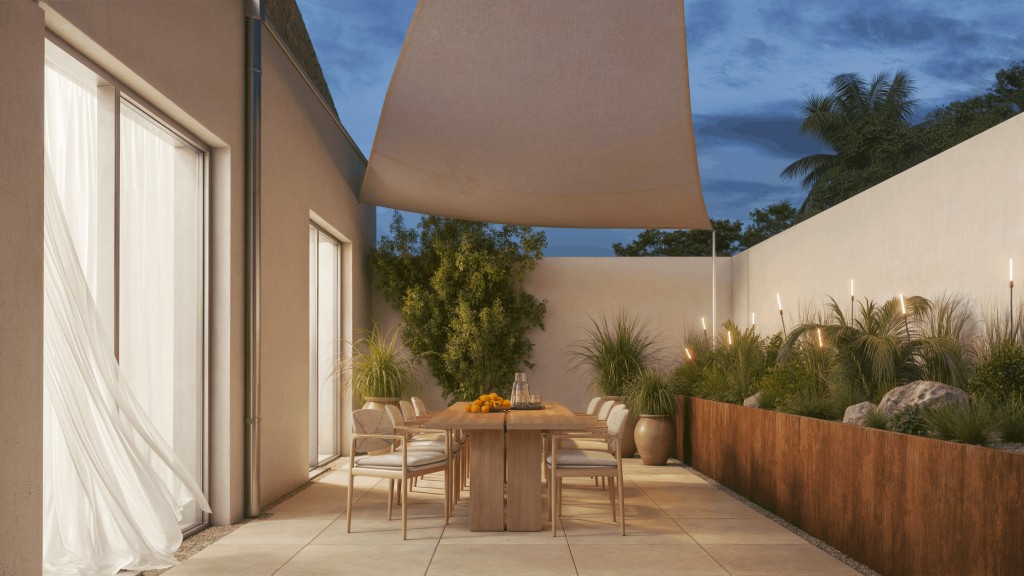 Each villa sits on a private plot of approximately 400 m², fully fenced to guarantee privacy, and features its own private swimming pool, landscaped garden and outdoor living areas. The architecture prioritises clean lines, natural light and seamless indoor-outdoor flow, allowing daily life to extend naturally towards terraces and green spaces. Whether hosting family gatherings, enjoying quiet mornings by the pool or relaxed evenings with friends, these villas create an atmosphere of calm, space and wellbeing.