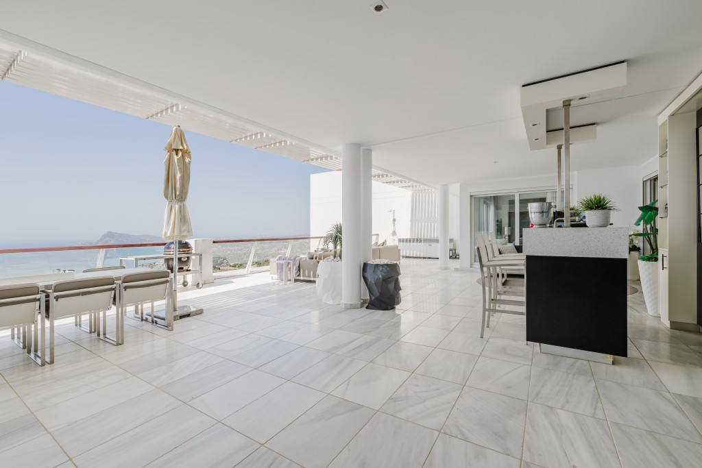 Mais le joyau de la couronne du Panorama del Mar est sa vaste terrasse privée, une oasis extérieure avec de nombreux sièges, des canapés design surdimensionnés, un bar intégré et un jacuzzi accueillant. Que ce soit pour un déjeuner ensoleillé, un cocktail au coucher du soleil ou simplement pour se détendre avec un bon livre, cet espace est conçu pour se détendre et recevoir. Une partie partiellement couverte avec un parasol automatique offre une ombre bienvenue pendant les heures les plus chaudes, tandis qu’une douche extérieure ajoute une touche rafraîchissante à votre expérience de spa.