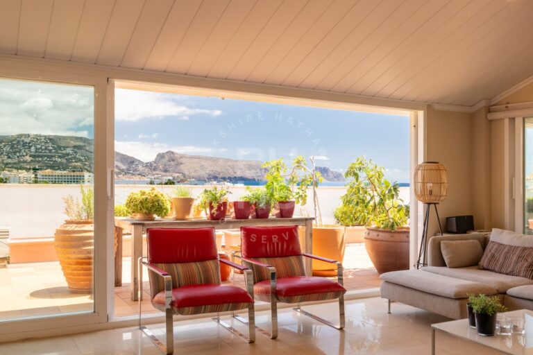 Terrasse spacieuse : La grande terrasse est idéale pour les repas en plein air, les bains de soleil et les magnifiques couchers de soleil d’Altea.