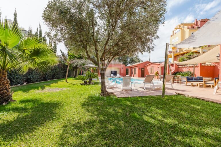 À l’extérieur, vous découvrirez une oasis privée : une grande piscine de 10 x 5 mètres, des chaises longues, des zones ombragées sous des palmiers méditerranéens et un jardin magnifiquement aménagé avec des arbres fruitiers, des terrasses pavées et de vastes espaces de détente. La propriété dispose également d’un parking pouvant accueillir jusqu’à cinq véhicules.