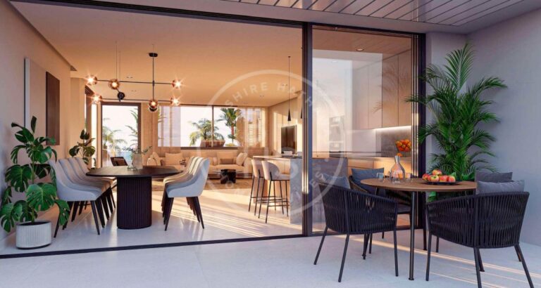 De open woon-eetkamer sluit naadloos aan op een moderne volledig uitgeruste keuken, perfect om gasten te ontvangen of te genieten van ontspannen familiemaaltijden. De master suite heeft een eigen badkamer, terwijl de twee slaapkamers een stijlvolle en goed ingerichte badkamer delen. Elke kamer is ontworpen om comfort, privacy en natuurlijk licht te maximaliseren.