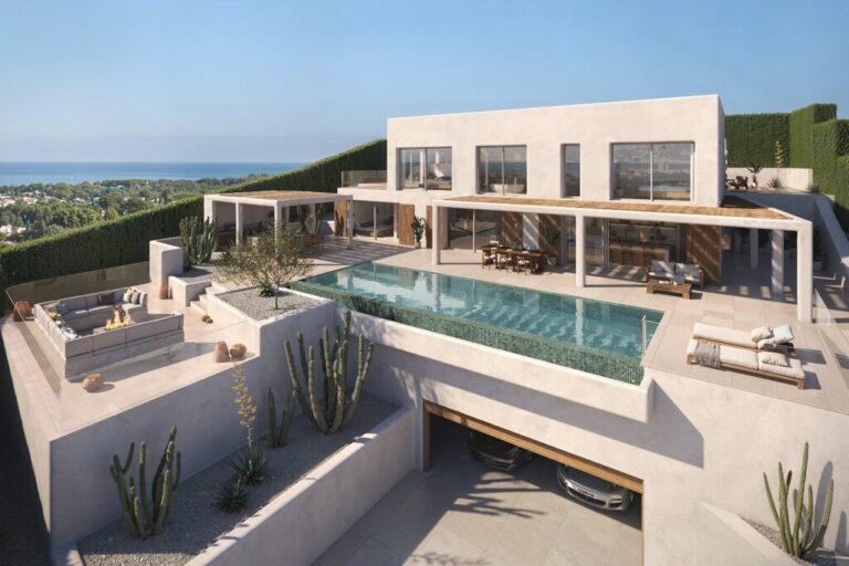 Het pand is ontworpen om een complete woonervaring te bieden, waarbij elke kamer uitnodigt om zowel van het dagelijks leven als van de vrije tijd in gezelschap te genieten. De grote ramen verbinden het interieur met het exterieur, waardoor een visuele continuïteit naar het landschap ontstaat die een gevoel van ruimtelijkheid en welzijn geeft. De terrassen en buitenruimtes vormen de ideale setting voor familiebijeenkomsten of sociale bijeenkomsten, met panoramische uitzichten die de hele dag door evolueren.