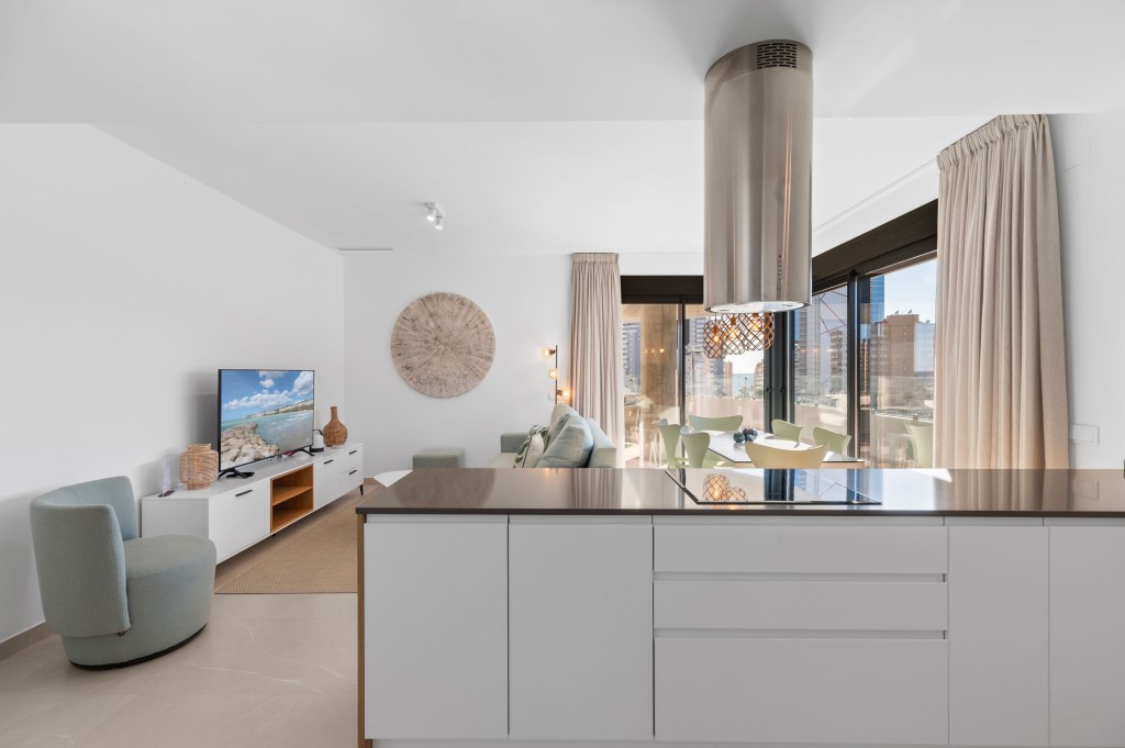 Ontdek een uitzonderlijke levensstijl aan de Costa Blanca met dit elegante luxe appartement in Calpe, gelegen in de zeer gewilde Arenal Beach wijk, op slechts 250 meter van de Middellandse Zee. Gelegen op de 6e verdieping van het exclusieve Saeta Calpe boutique woonproject, biedt deze woning de perfecte balans tussen comfort, privacy en levendig leven aan de kust.
