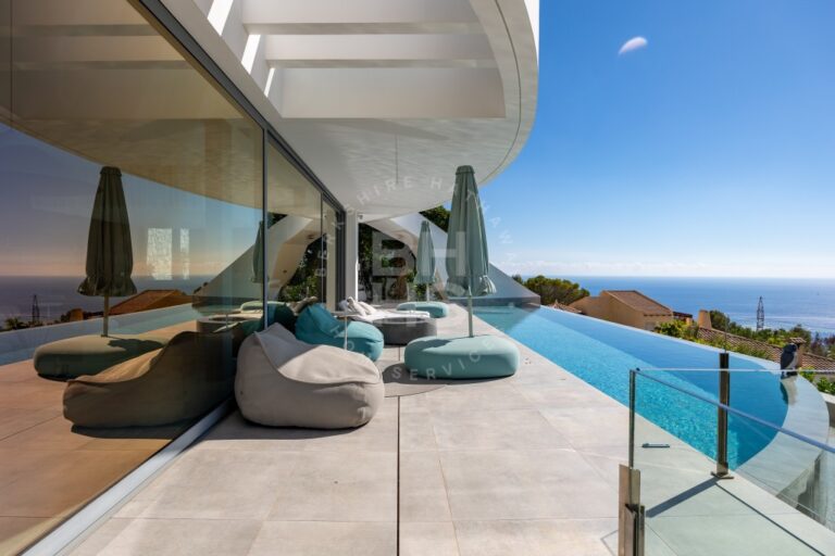 Als je deze uitzonderlijke woning binnenstapt, word je meteen begroet door een gevoel van grandeur en warmte. Het halfronde ontwerp van de villa is niet alleen een uniek architectonisch kenmerk, maar versterkt ook het adembenemende panoramische uitzicht waar Altea bekend om staat. Deze zorgvuldig vervaardigde structuur lijkt boven het landschap te zweven, gaat naadloos op in de omgeving en biedt tegelijkertijd een gevoel van veiligheid en privacy. Het exterieurontwerp wordt aangevuld door het gebruik van een enkel belangrijk element dat het hele project definieert – een echt bewijs van de doordachte planning en uitvoering achter dit huis.