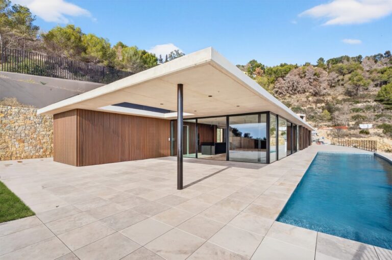 Het ontwerp van de villa reageert direct op de natuurlijke topografie van het perceel, met respect voor het bestaande terrein en het traditionele terrassenlandschap van het gebied. Geïnspireerd door de droge stenen muren die typerend zijn voor het platteland van Benissa, gaat het exterieur harmonieus op in de omgeving, met een minimum aan grondverzet en behoud van het karakter van het land. Het resultaat is een huis dat diep geworteld is in zijn omgeving, maar toch onmiskenbaar eigentijds is.