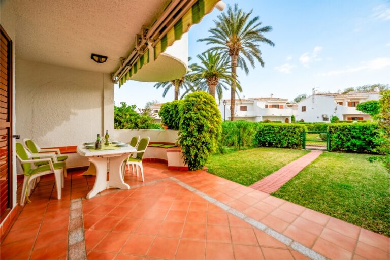 El jardín privado, completamente cercado, es ideal para quienes tienen mascotas o desean un espacio seguro y tranquilo donde los más pequeños puedan jugar libremente. Además, el acceso directo a las zonas comunes permite disfrutar de cuidados jardines y una refrescante piscina comunitaria, creando una auténtica atmósfera de resort a tan solo 2 minutos caminando de la playa.