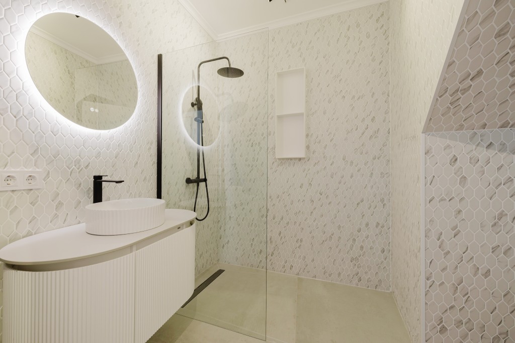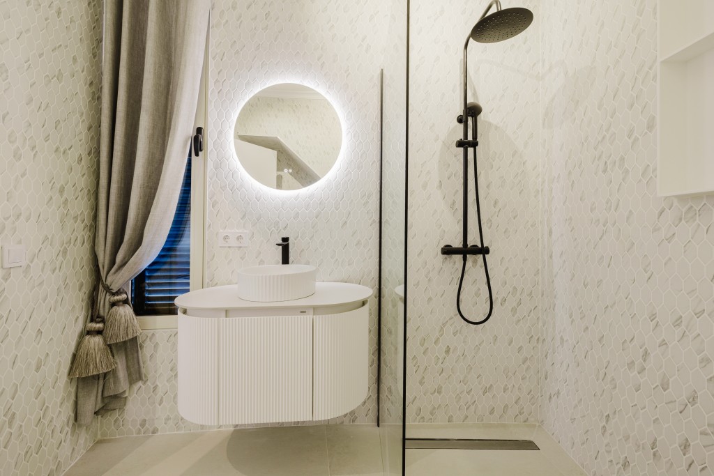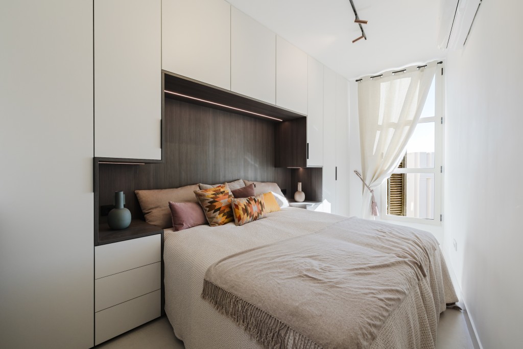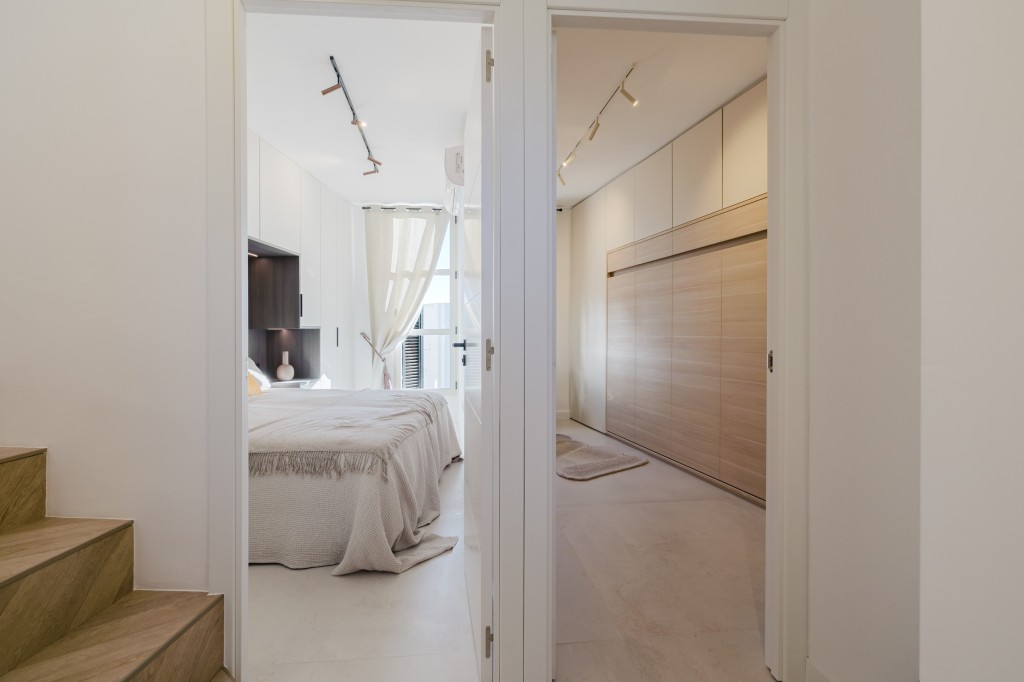 Este elegante dúplex de dos dormitorios y dos baños se integra a la perfección en los acantilados mediterráneos, ofreciendo unas vistas incomparables sobre la bahía de Calpe y el majestuoso Peñón de Ifach. Cada espacio invita a la serenidad y al disfrute: los baños de mosaico de mármol -uno con un lavabo de Corian y el otro con un diseño inspirado en un anfiteatro- aportan un lujo discreto, mientras que los dos serenos dormitorios ofrecen armarios empotrados del suelo al techo que aumentan la comodidad y la funcionalidad.