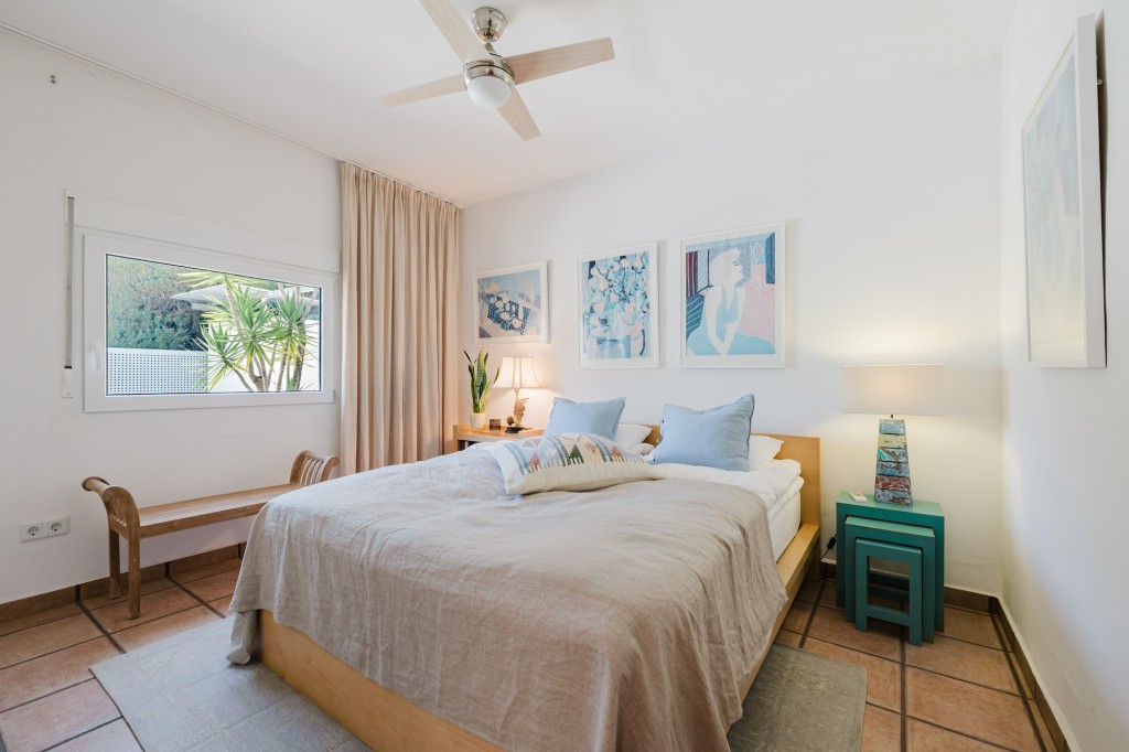 La villa cuenta con tres amplios dormitorios y dos baños modernos, proporcionando un ambiente luminoso y aireado en todas partes. Además, hay un alojamiento independiente para invitados, ideal para alojar a familiares y amigos manteniendo la privacidad.