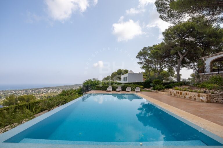 Descubra el epítome de la vida de lujo en esta extraordinaria villa de dos plantas en Jávea, que ofrece inigualables vistas panorámicas del mar, las montañas y la vibrante ciudad de abajo. Con una amplia parcela de 3.000 m², esta propiedad cuenta con 640 m² de espacio habitable meticulosamente diseñado, 250 m² de terrazas bañadas por el sol, y un diseño perfecto para familias numerosas o aquellos que aman entretener.