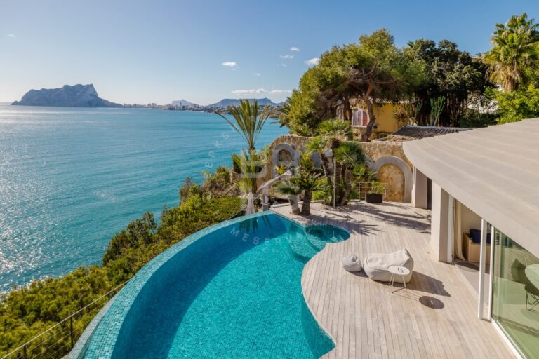 Enclavada sobre los espectaculares acantilados de Moraira, Costa Blanca, esta impresionante villa junto al mar ofrece una oportunidad única de adquirir un pedazo de paraíso. Con vistas panorámicas al mar Mediterráneo, esta extraordinaria propiedad se distribuye en tres niveles, cada uno de los cuales ofrece vistas excepcionales y espacios de vida que prometen confort, elegancia y lujo. Con un diseño sofisticado, una ubicación privilegiada frente al mar y una calidad inigualable, esta villa es perfecta para familias o amigos que buscan un refugio costero tranquilo y elegante.