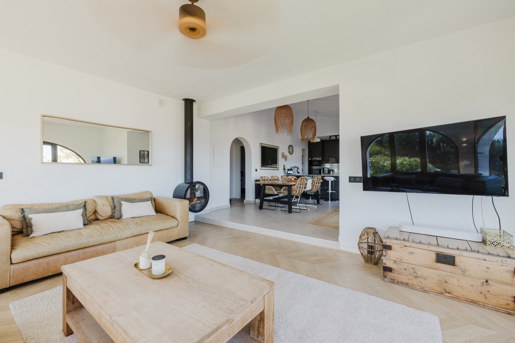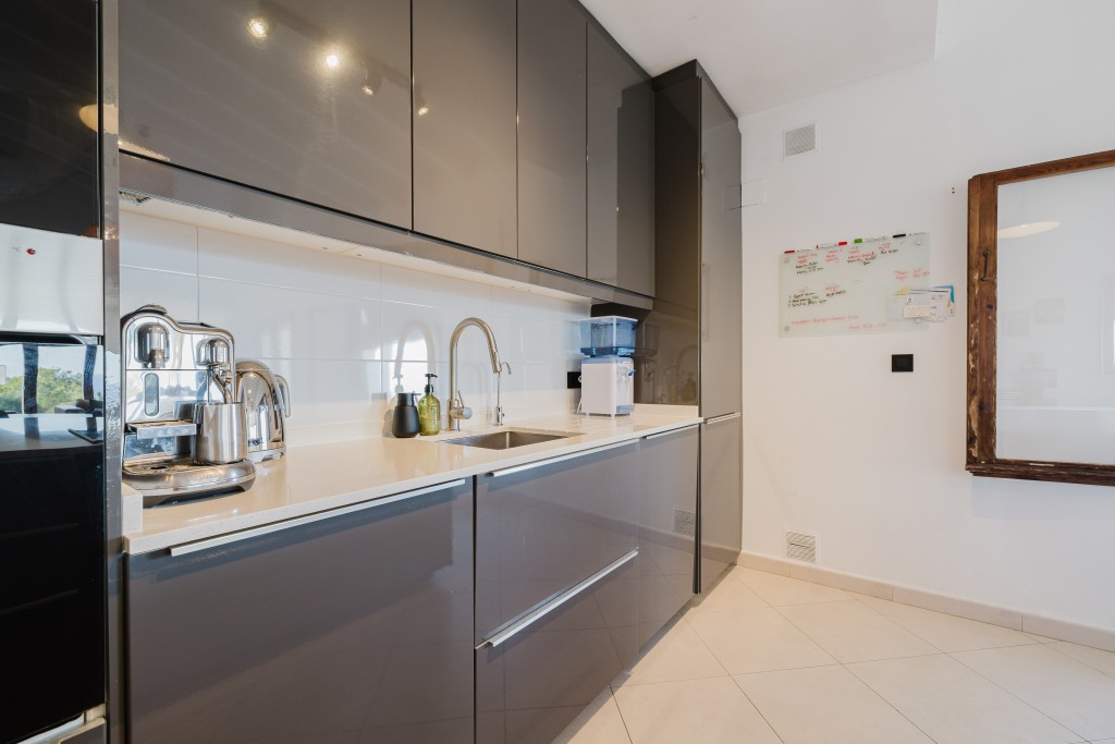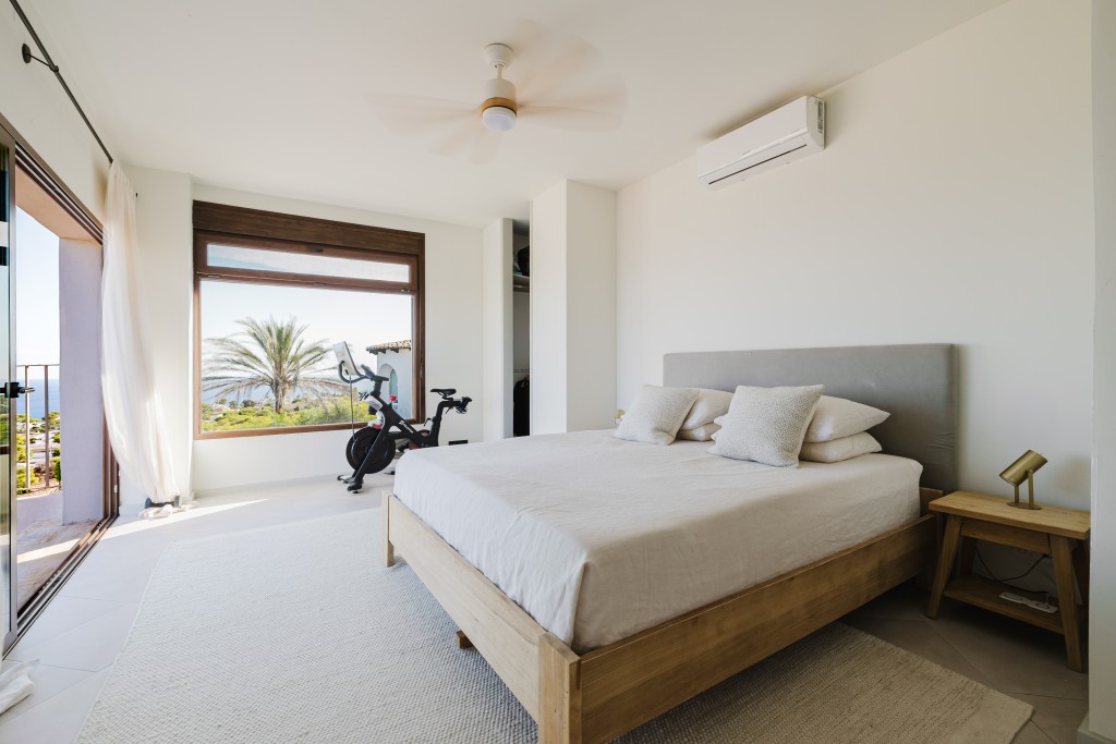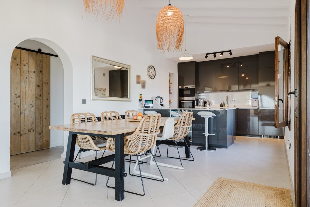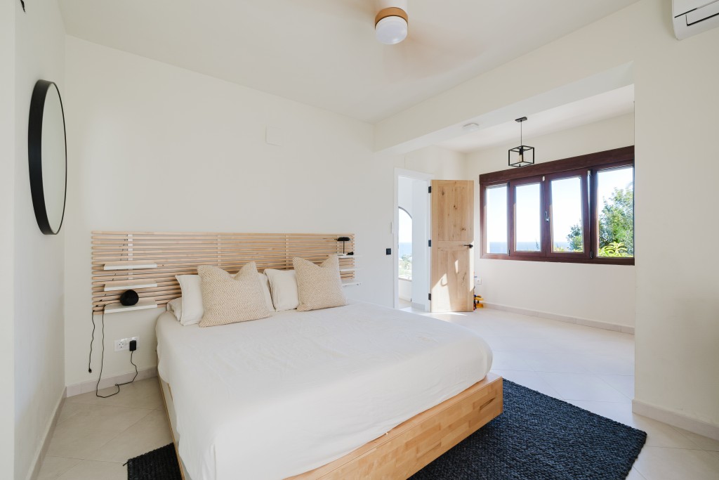 El corazón de la villa late en su cocina de concepto abierto y en el amplio salón-comedor, donde la luz natural fluye gracias a grandes ventanales y techo que enmarcan el Mediterráneo como si fuese una obra de arte en constante movimiento. Desde el amanecer hasta el atradecer, cada rincon de esta bonita pieza invita a compartir momentos en familia y con amigos: desayunos soleados, cenas al aire libre, tardes de lectura con la brisa marina y celebraciones inolvidables bajo el cielo estrellado.
