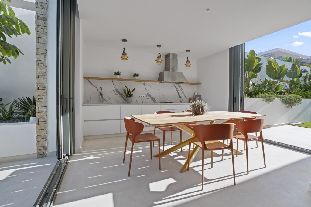 La vida al aire libre se considera una extensión esencial de la casa. Las piscinas privadas con iluminación subacuática, las duchas exteriores, los jardines de bajo mantenimiento, las amplias terrazas y las zonas de barbacoa opcionales crean el entorno perfecto para las tardes relajadas, las cenas al atardecer y el disfrute mediterráneo durante todo el año.
