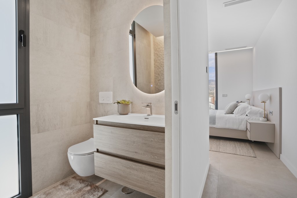 La ubicación ofrece un raro equilibrio entre tranquilidad y conectividad. Las playas de Benidorm están a poca distancia, mientras que la Playa del Albir, las calas de Altea y el emblemático Altea Casco Antiguo están a sólo unos minutos. Villaitana Golf Resort y otros campos de renombre están cerca, al igual que los puertos deportivos, centros comerciales y restaurantes. Las familias se benefician de excelentes escuelas internacionales y privadas en La Nucía y sus alrededores, por lo que es una opción ideal para la vida permanente. El aeropuerto internacional de Alicante es de fácil acceso, lo que garantiza conexiones fluidas con toda Europa y más allá, mientras que Calpe y sus parques naturales completan un estilo de vida rico en variedad y calidad.