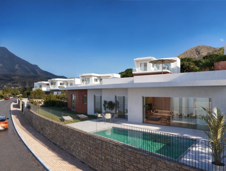 Cada villa se asienta en su propia parcela privada, lo que garantiza espacio, serenidad e independencia absoluta. Desde su privilegiada posición elevada, las propiedades se abren a amplias vistas al mar y a la montaña, capturando la esencia del paisaje de la Costa Blanca. El acceso se realiza a través de un camino comunitario privado, lo que refuerza la seguridad, el orden y la exclusividad en general.